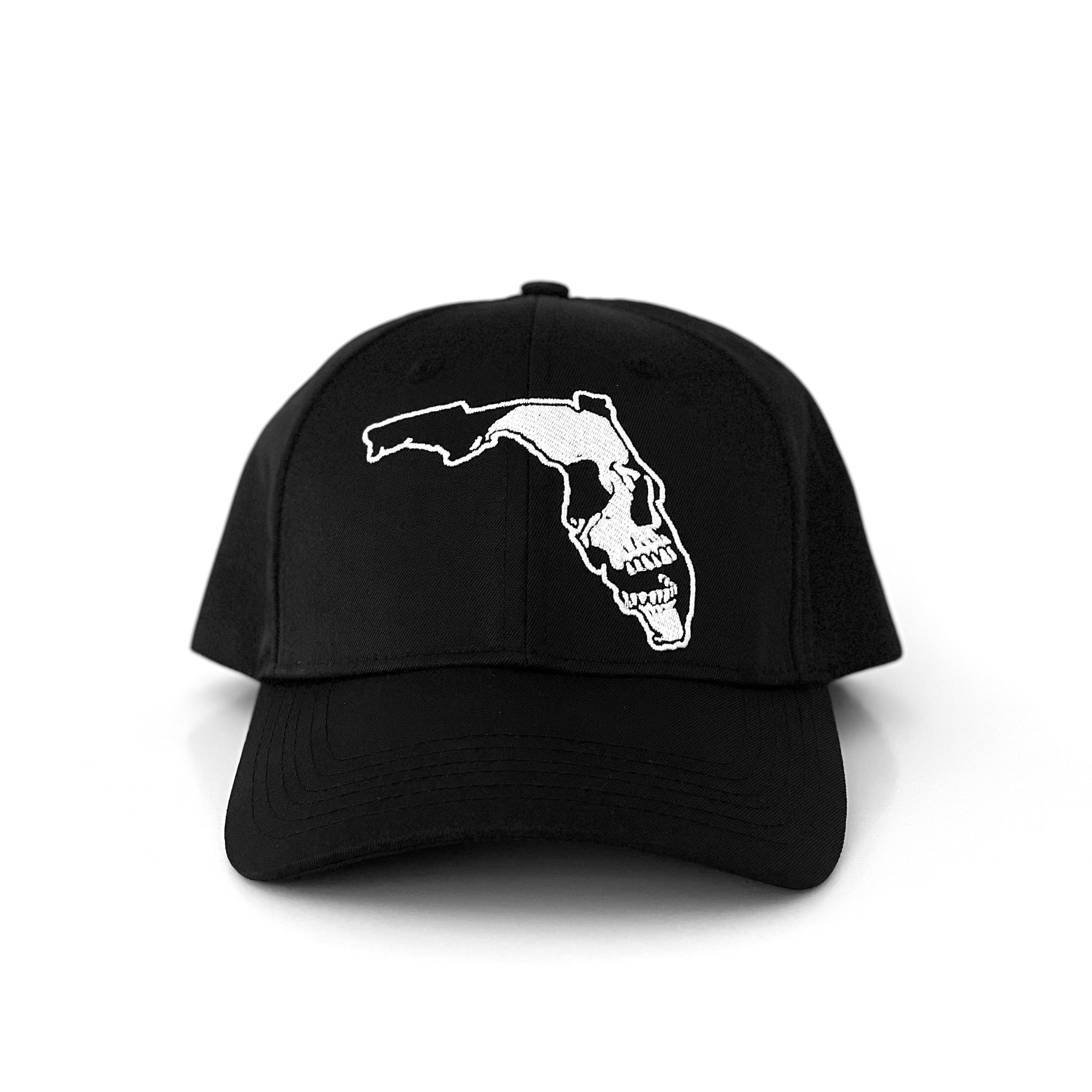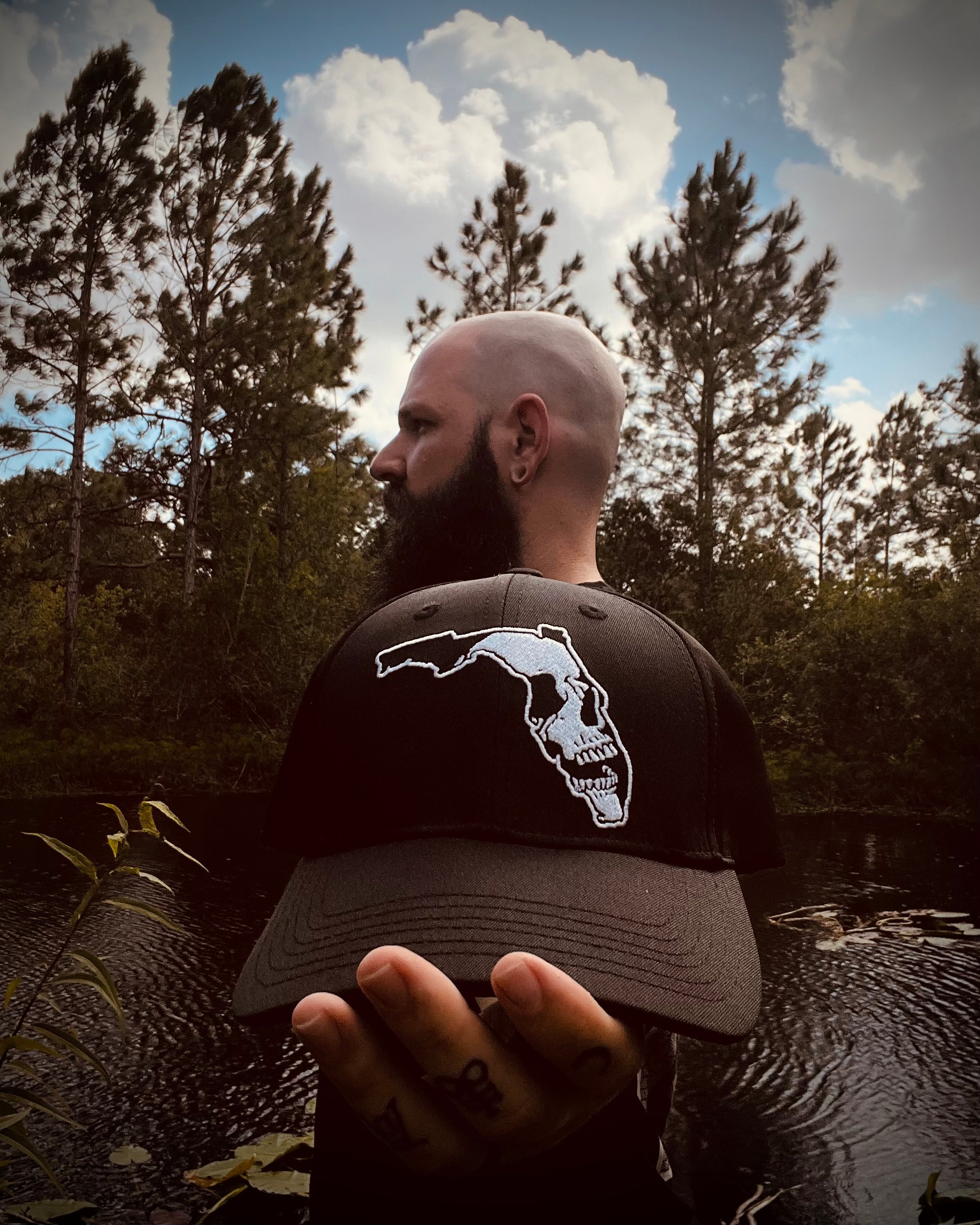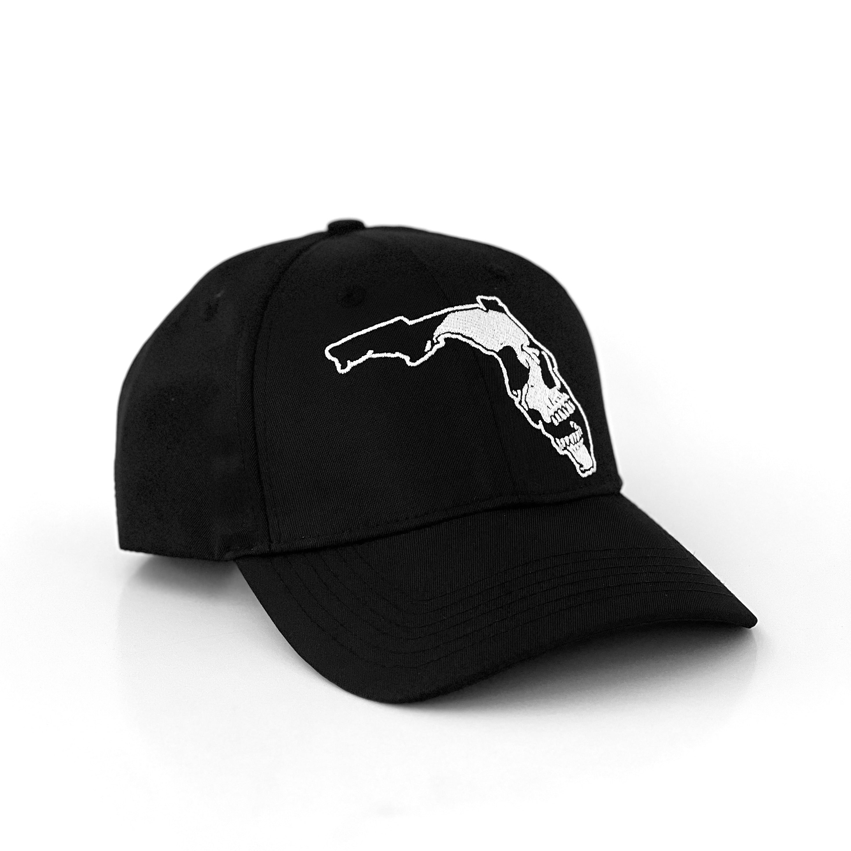 Black snapback hat with white embroidered design on front and a Leviathan Artworks tag inside the cap. One size fits most.